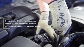 Defesas reforçadas: A fibra INTERCEPT™ Cut Resistance Technology das luvas de trabalho industrial HyFlex® 11-550 também oferece proteção contra cortes de nível básico