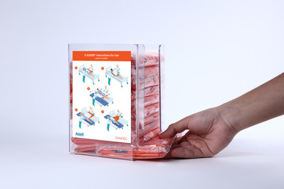 Le NOUVEAU distributeur mural au point d’utilisation Z-Slider permet de ranger les paquets individuels Z-Slider dans les chambres des patients ou dans la salle d’opération.