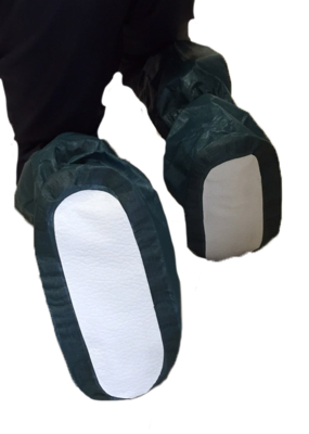 Overboots, triple sole design consisting of two layers of AlphaTec® 4000 with TPR conductive pads and grooved PVC outer soles - no ties, ultrasonically and welded and taped seams.