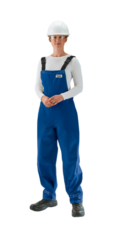 El overol con peto certificado por la NFPA 1990 (NFPA 1992) y la NFPA 2112 es transpirable, reutilizable y resistente a las salpicaduras de productos químicos, al fuego repentino, al arco eléctrico y a los líquidos calientes.